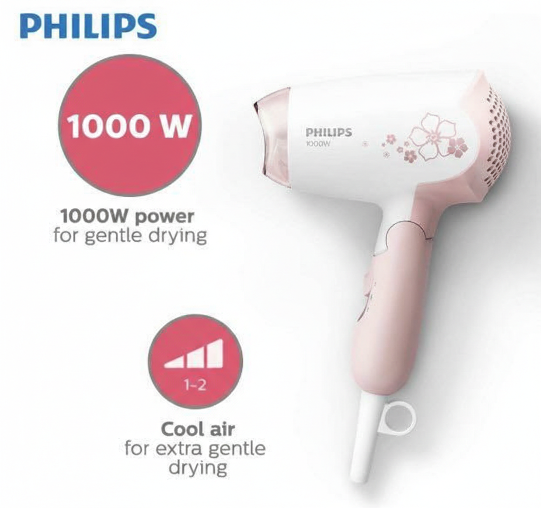 Philips DryCare HP8108/00 Hair Dryer – 1000W | 2 Speed | Foldable | 220–240V