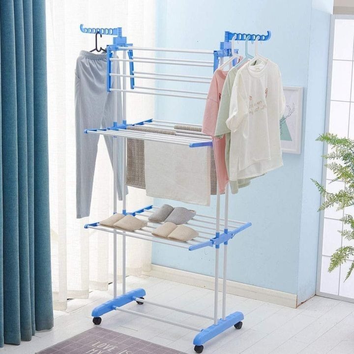 3 Layer Cloth Drying Stand Hanger Organizer Shelf | Space Saving Multi-Tier Clothes Drying Rack for Home & Balcony